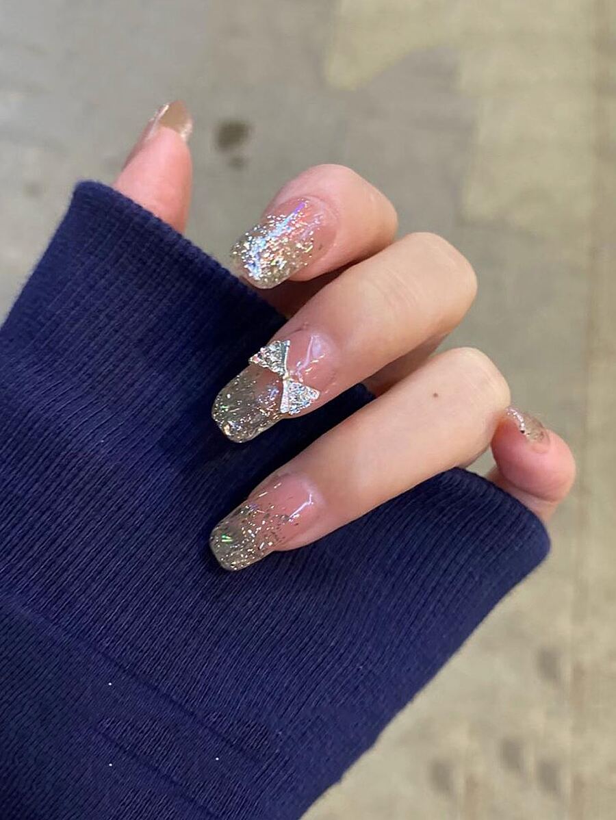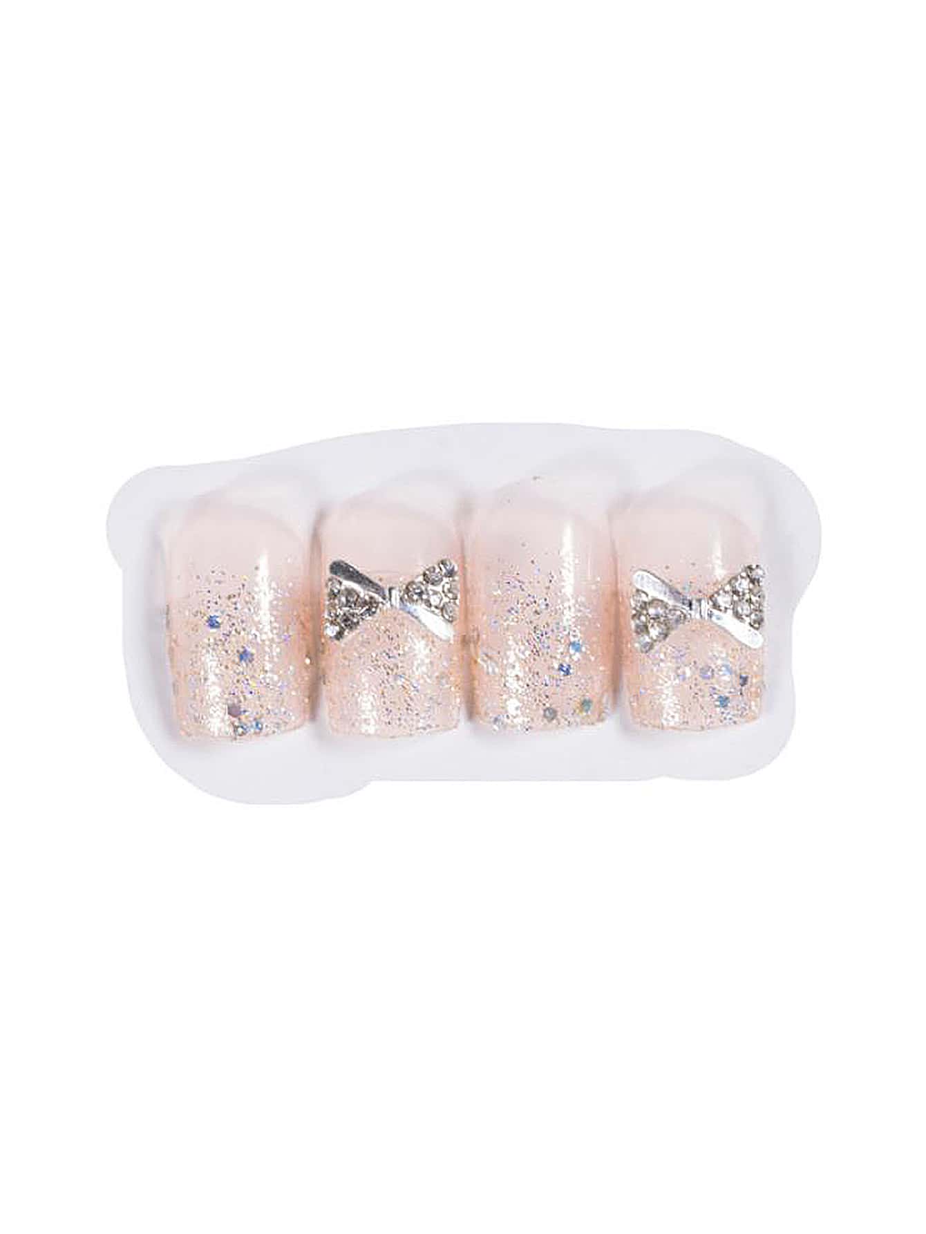24pcs Bow Decor Glitter Fake Nail