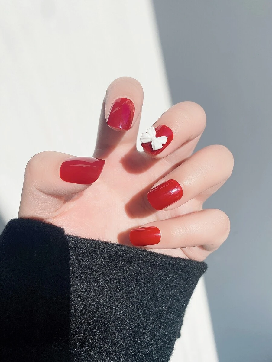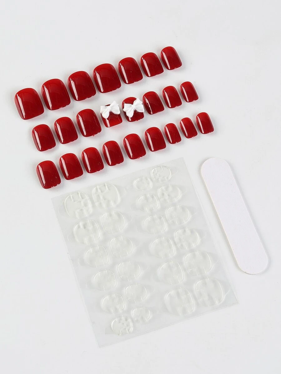 24pcs Bow-knot Decor Fake Nail & 1sheet Tape & 1pc Nail File