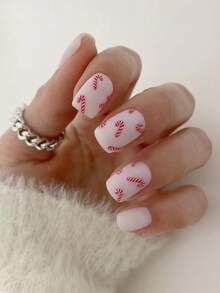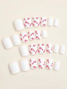 24pcs Christmas Print Fake Nail & 1sheet Tape