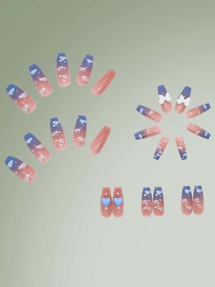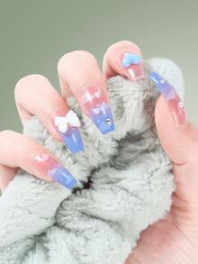 24pcs Coffin 3D Bow Decor Fake Nail & 1sheet Tape