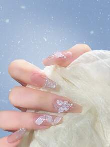 24pcs Coffin 3D Butterfly Decor Fake Nail & 1sheet Tape