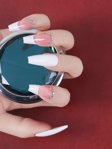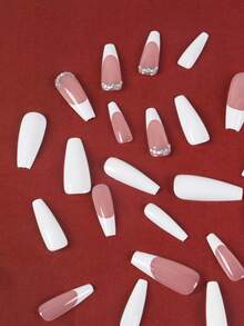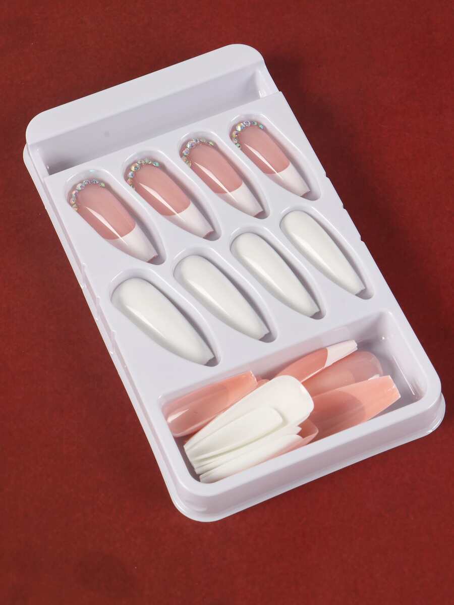 24pcs Coffin 3D Rhinestone Decor Fake Nail & 1sheet Tape