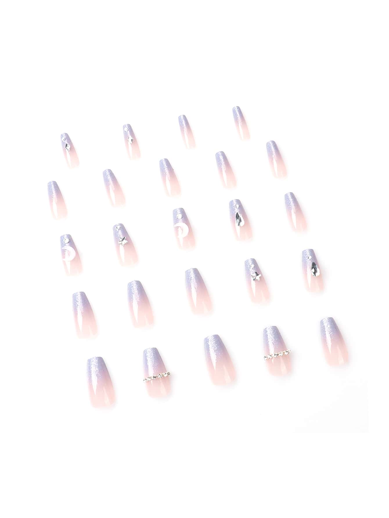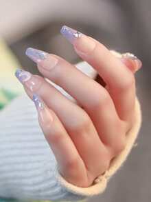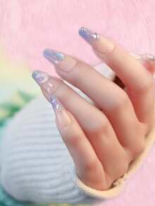 24pcs Coffin 3D Rhinestone Decor Fake Nail & 1sheet Tape