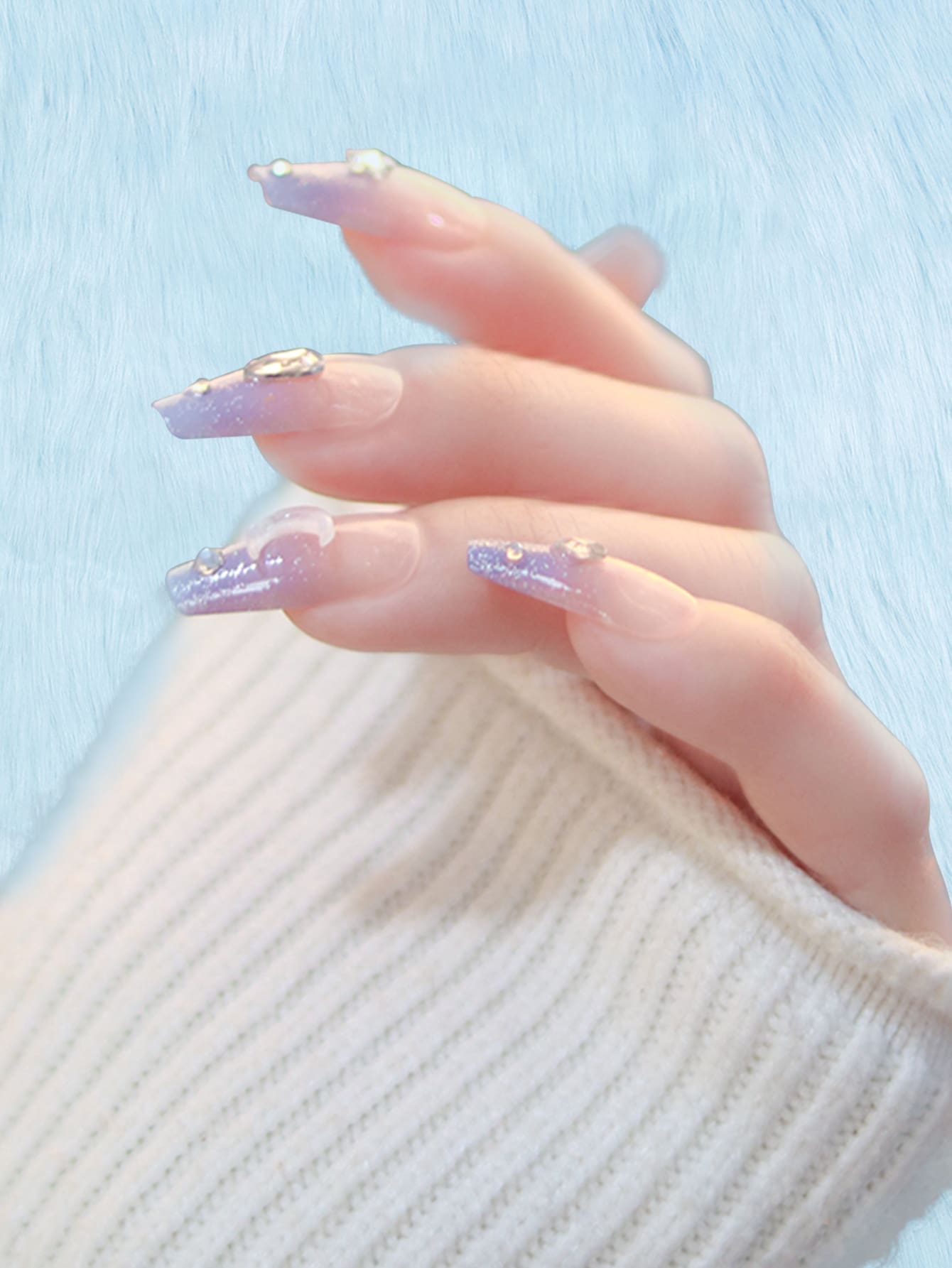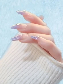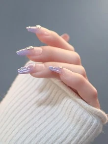 24pcs Coffin 3D Rhinestone Decor Fake Nail & 1sheet Tape