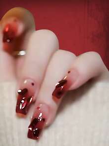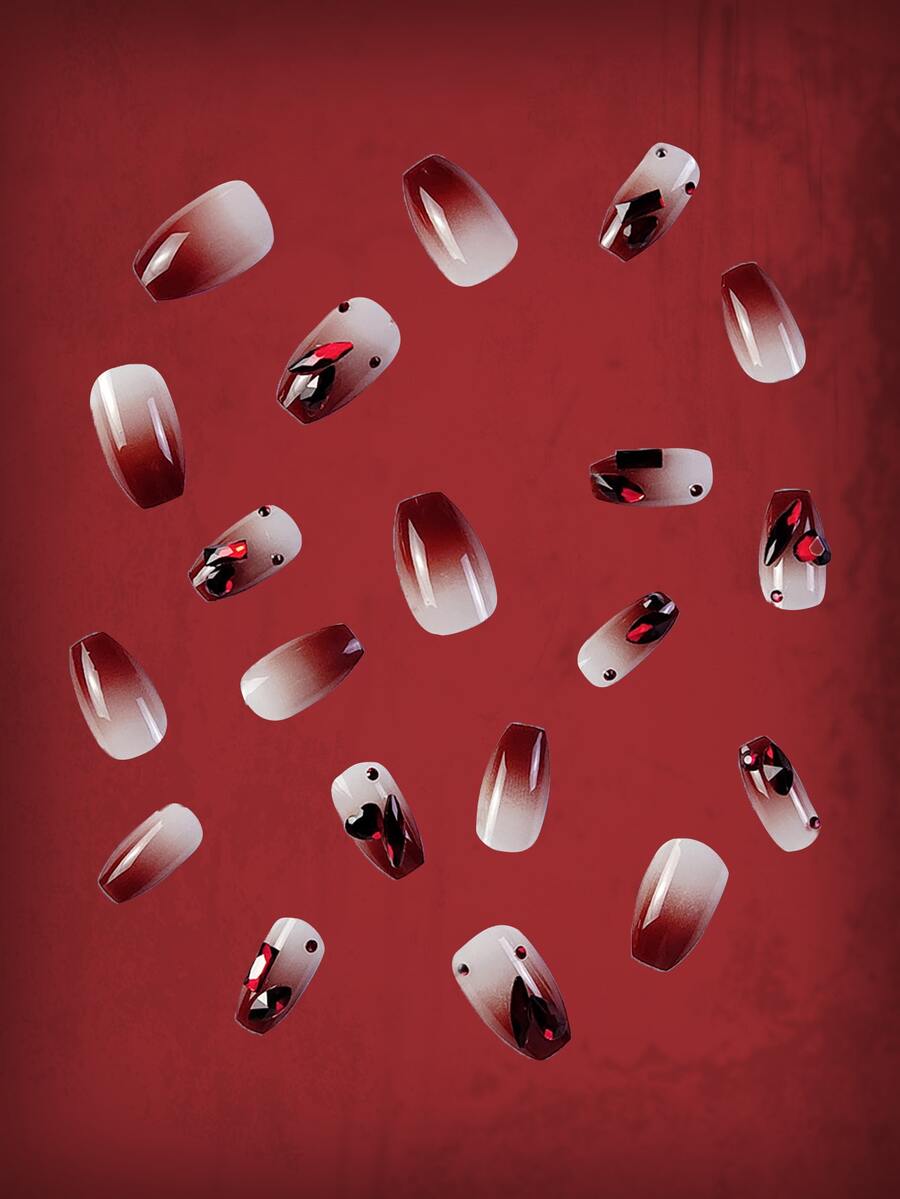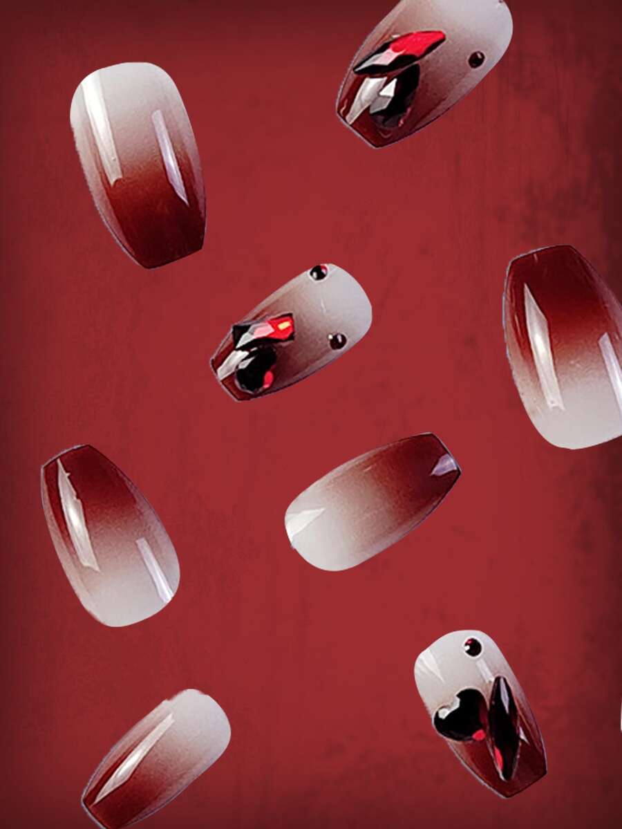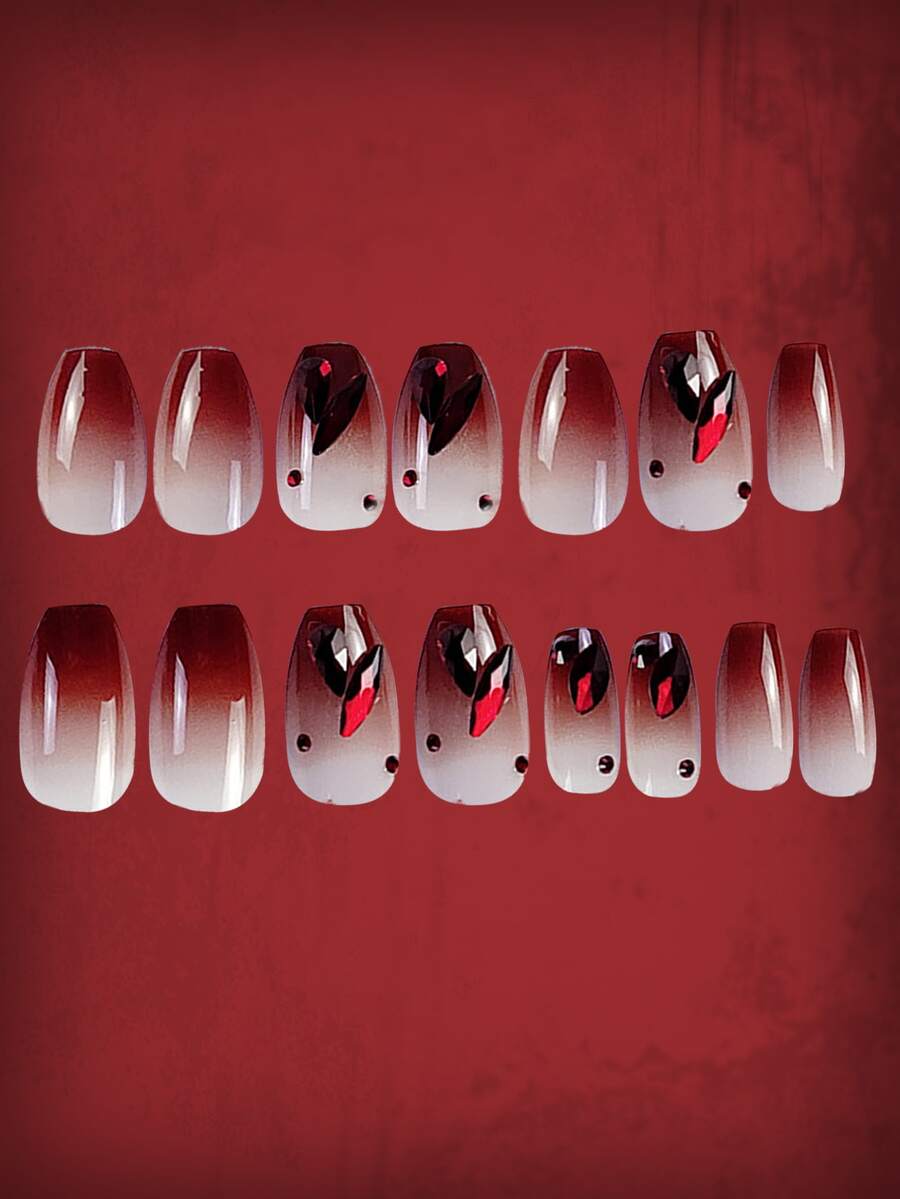 24pcs Coffin 3D Rhinestone Decor Fake Nail & 1sheet Tape