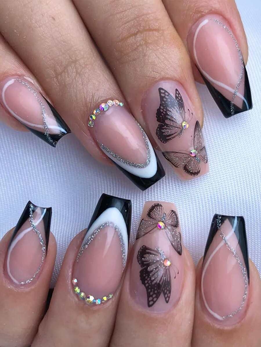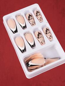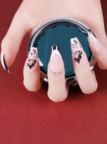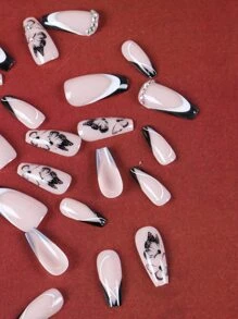 24pcs Coffin Butterfly Print Fake Nail & 1sheet Tape