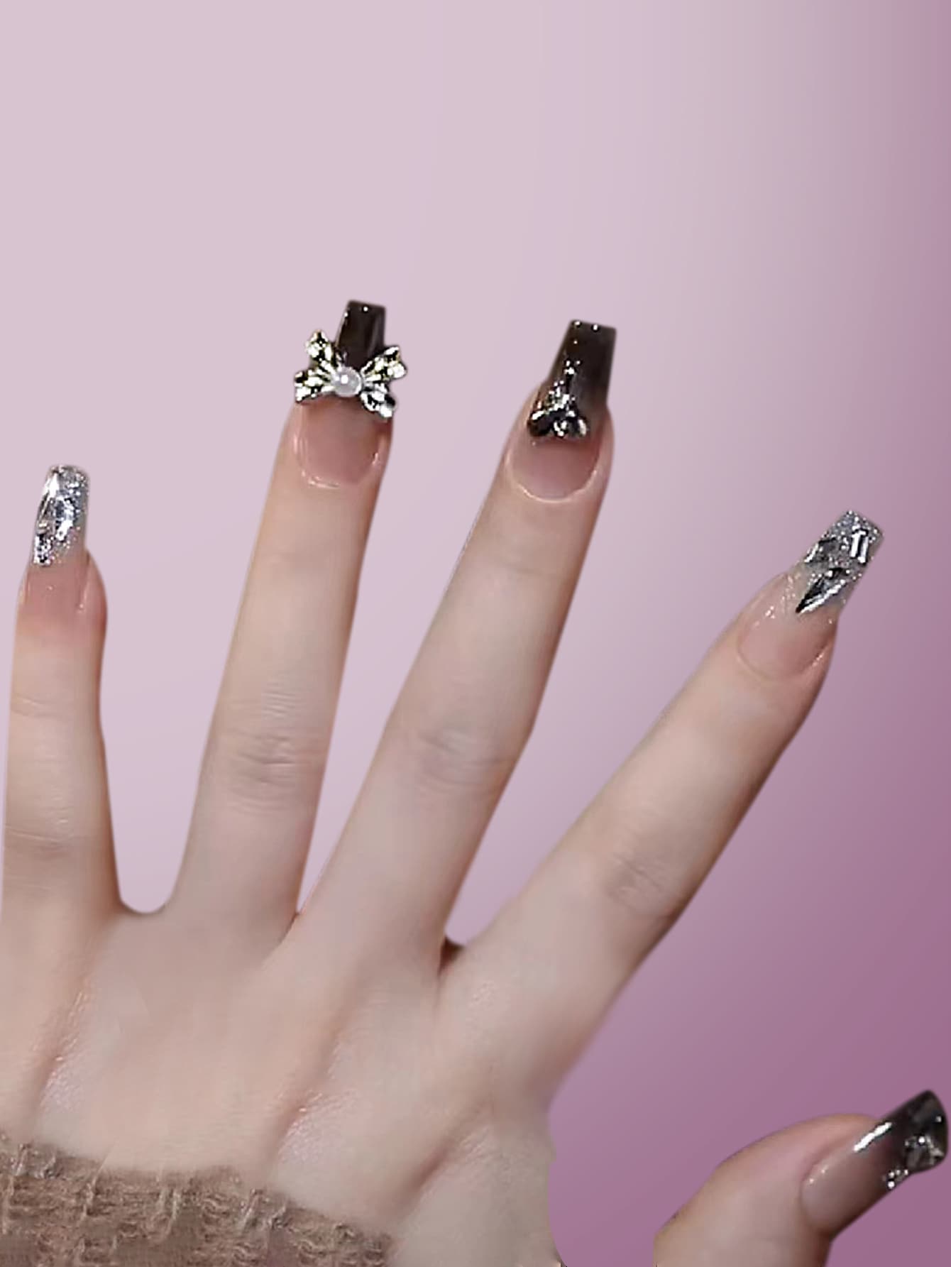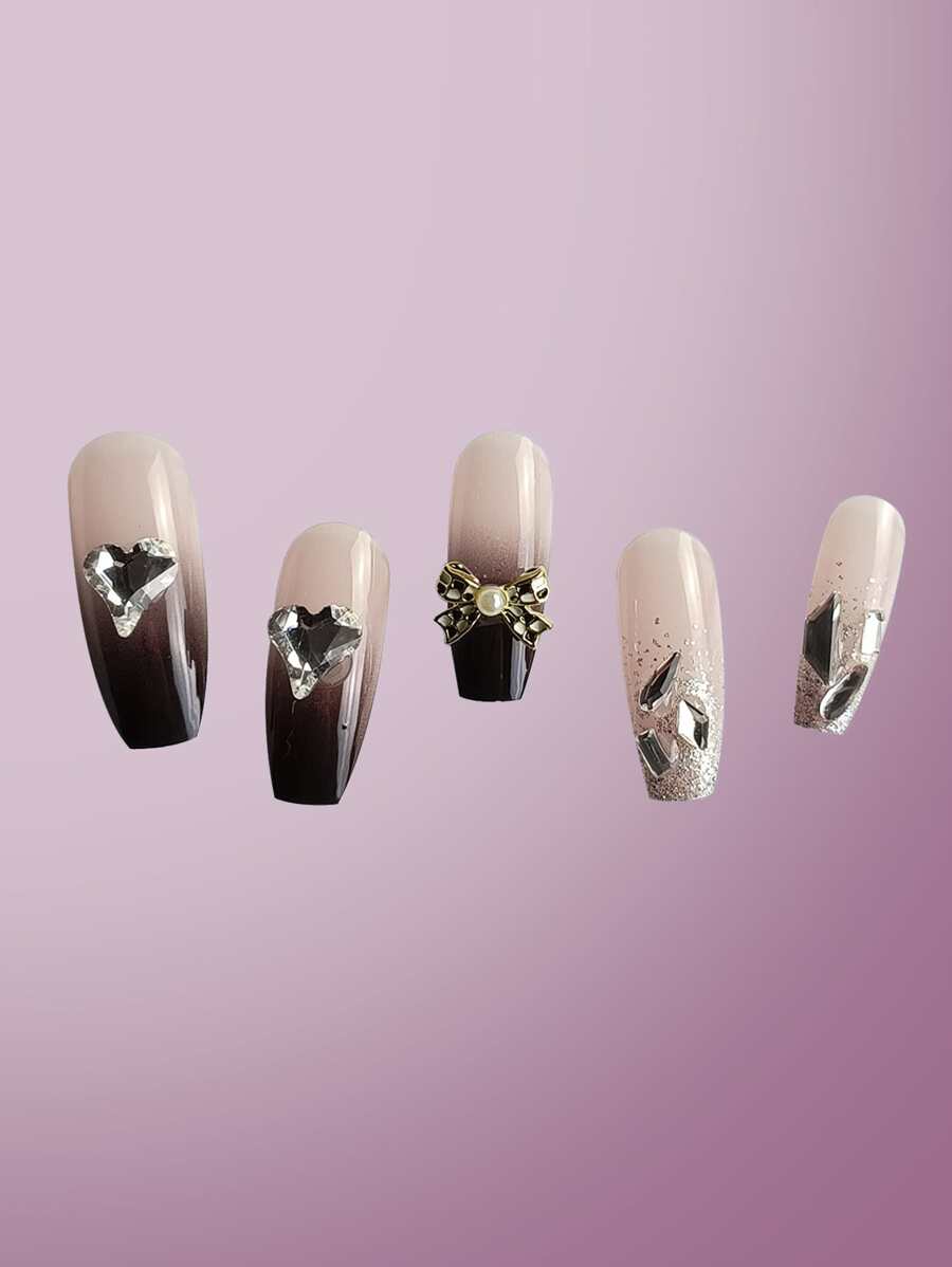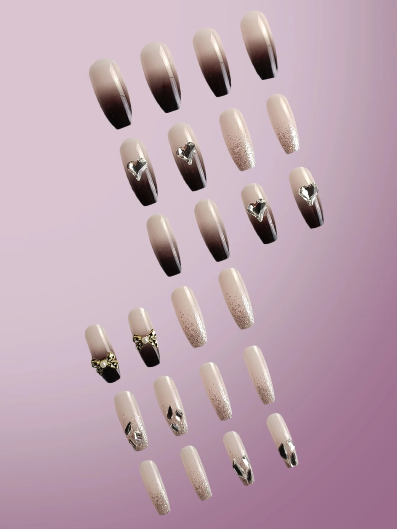 Goth 24pcs Coffin Ombre Fake Nail & 1sheet Nail Tape