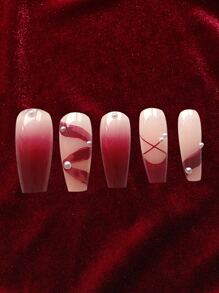 24pcs Coffin Ombre Fake Nail & 1sheet Tape