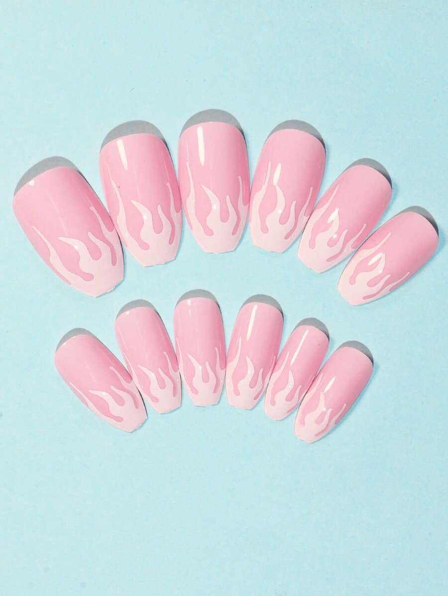 24pcs Flame Pattern Fake Nail & 1sheet Tape & 1pc Nail File