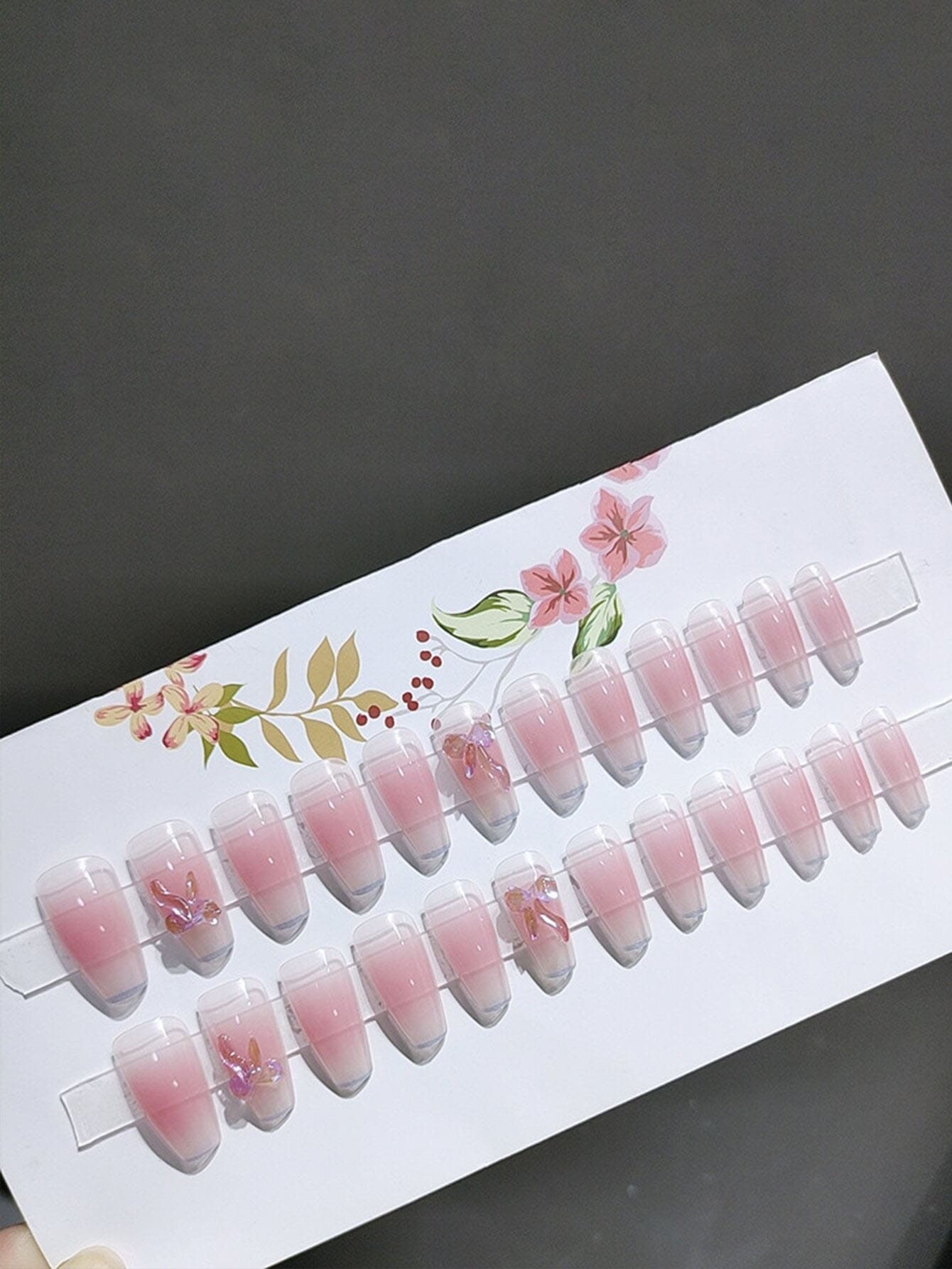 24pcs Long Coffin 3D Bow Decor Fake Nail & 1sheet Tape