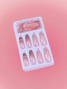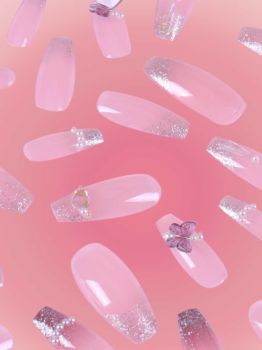 24pcs Long Coffin Butterfly Decor Fake Nail & 1sheet Tape
