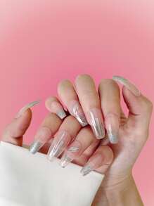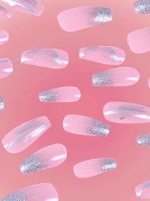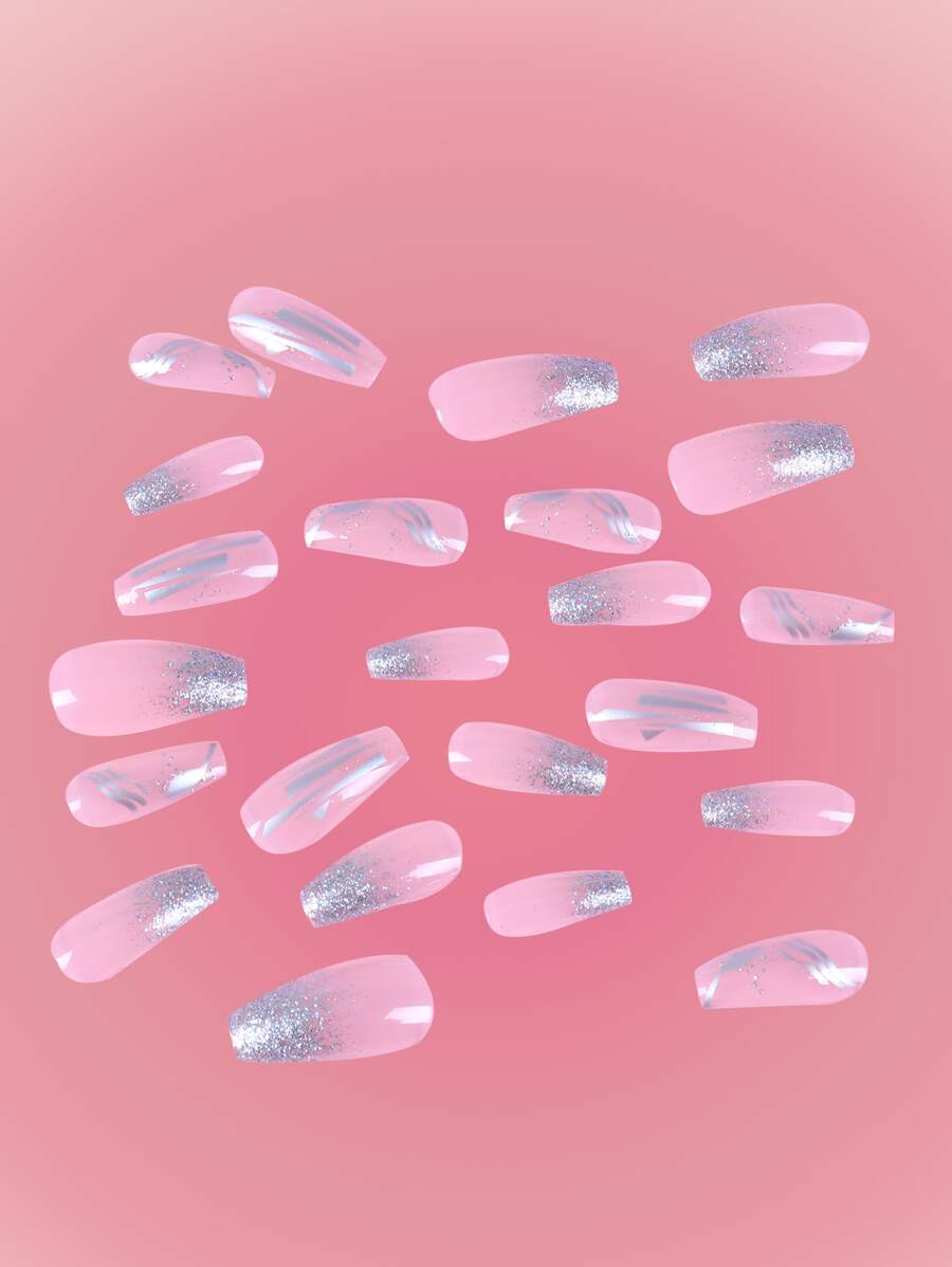 24pcs Long Coffin Glitter Fake Nail & 1sheet Tape