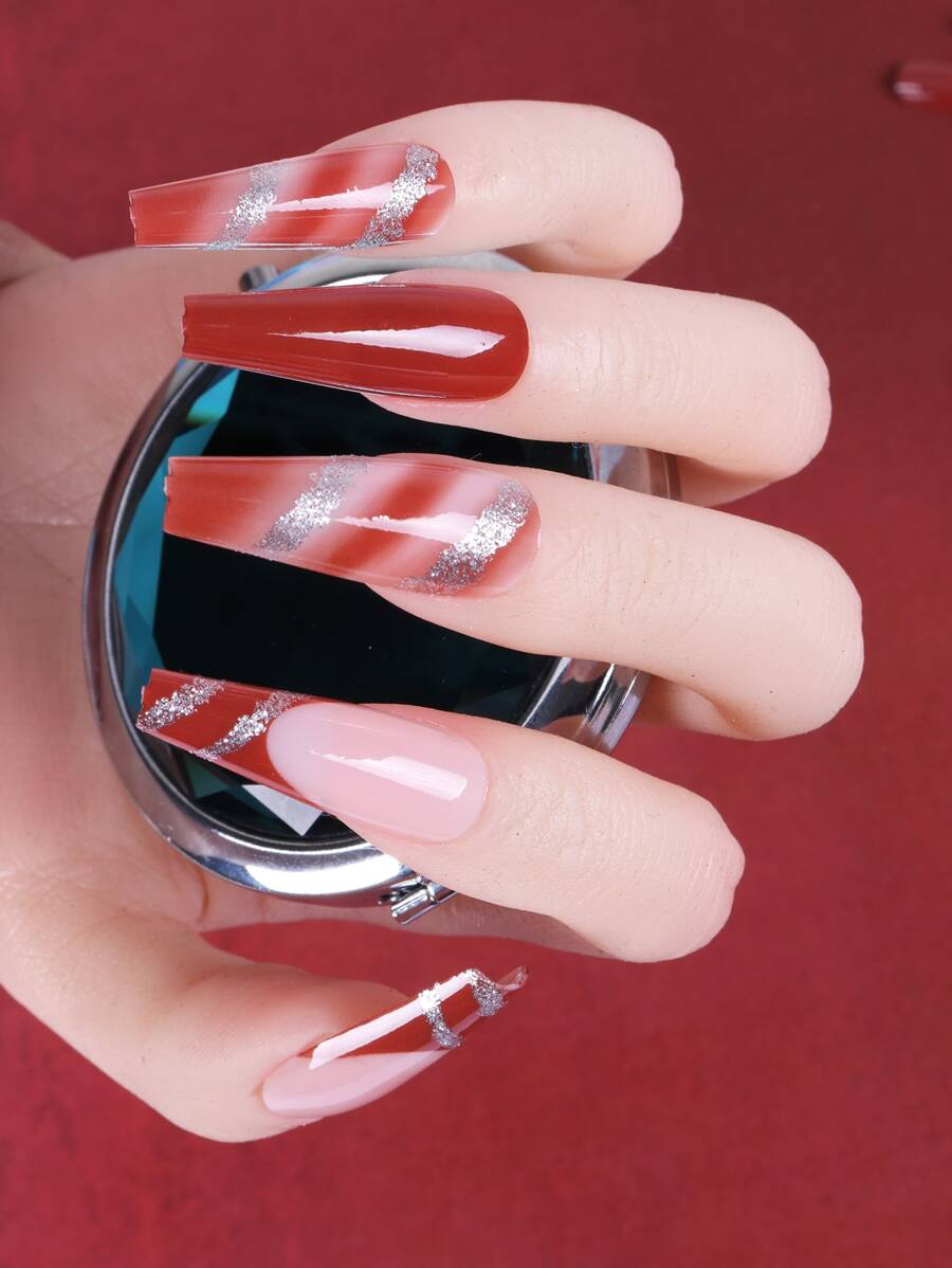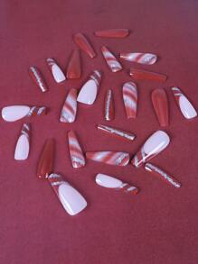 24pcs Long Coffin Glitter Fake Nail & 1sheet Tape