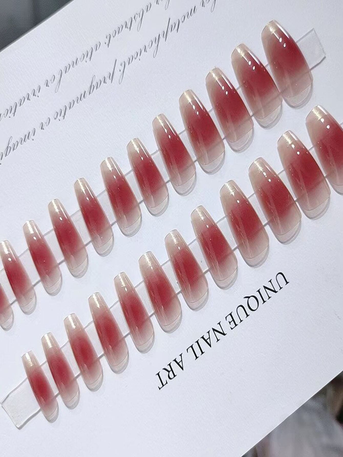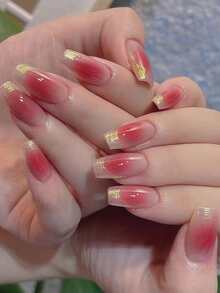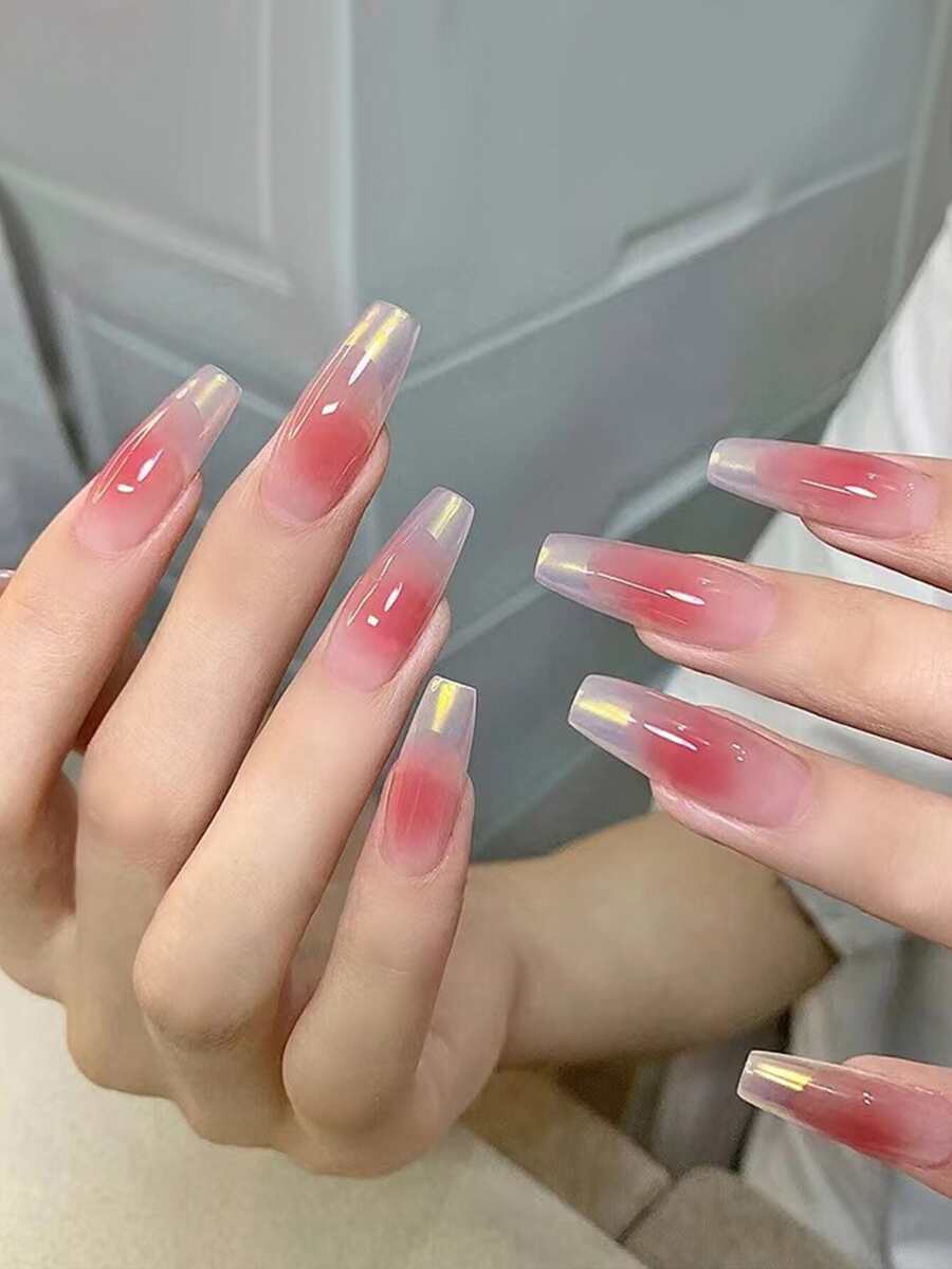24pcs Long Coffin Ombre Fake Nail & 1sheet Tape