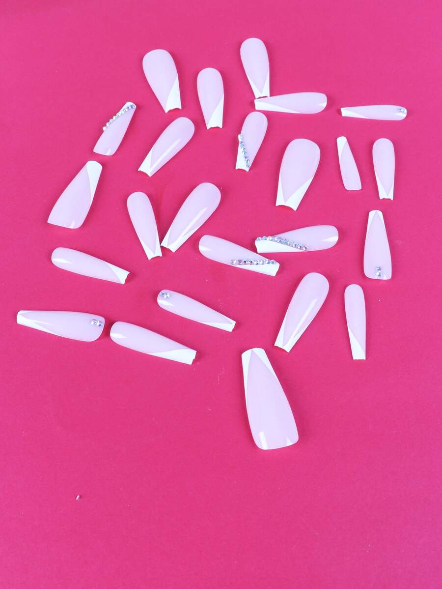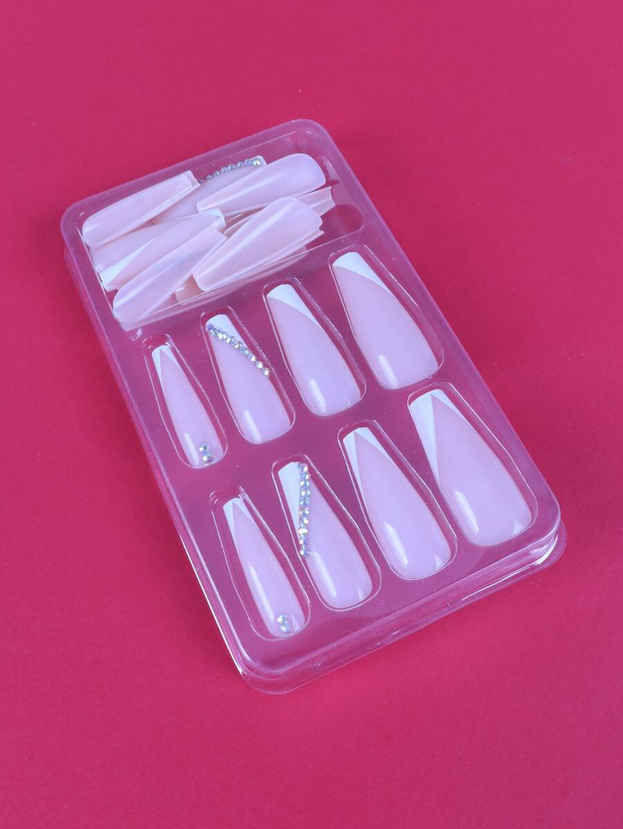 24pcs Long Coffin Rhinestone Decor Fake Nail & 1sheet Tape