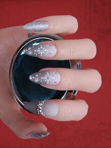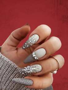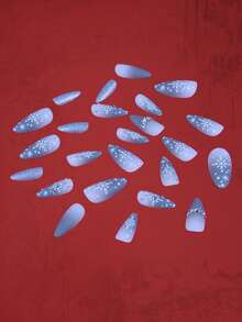 24pcs Long Stiletto Rhinestone Decor Fake Nail & 1sheet Tape