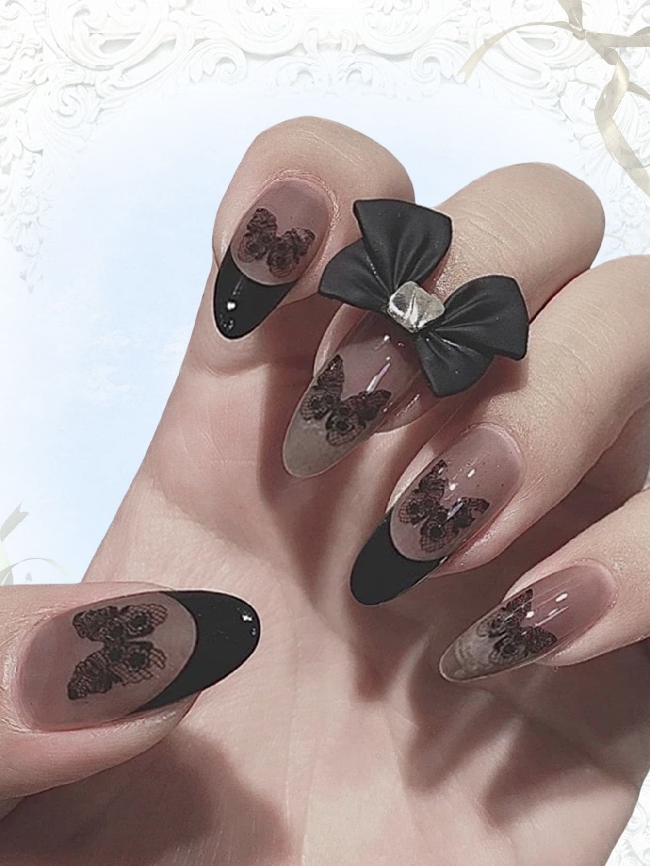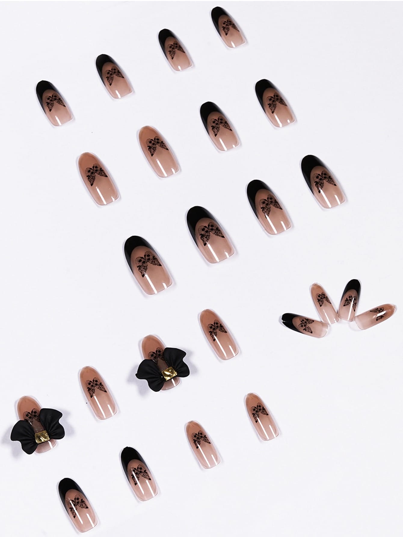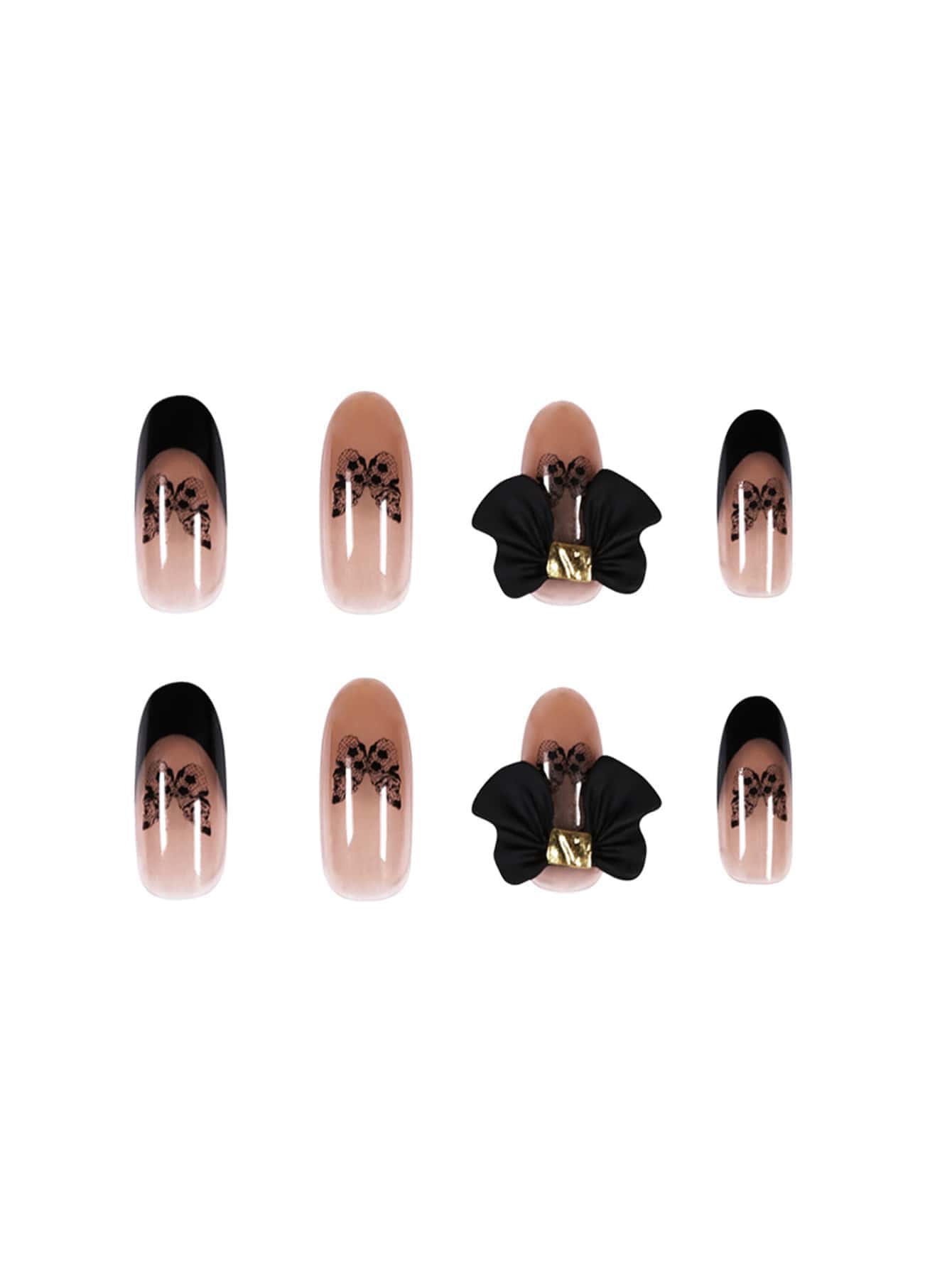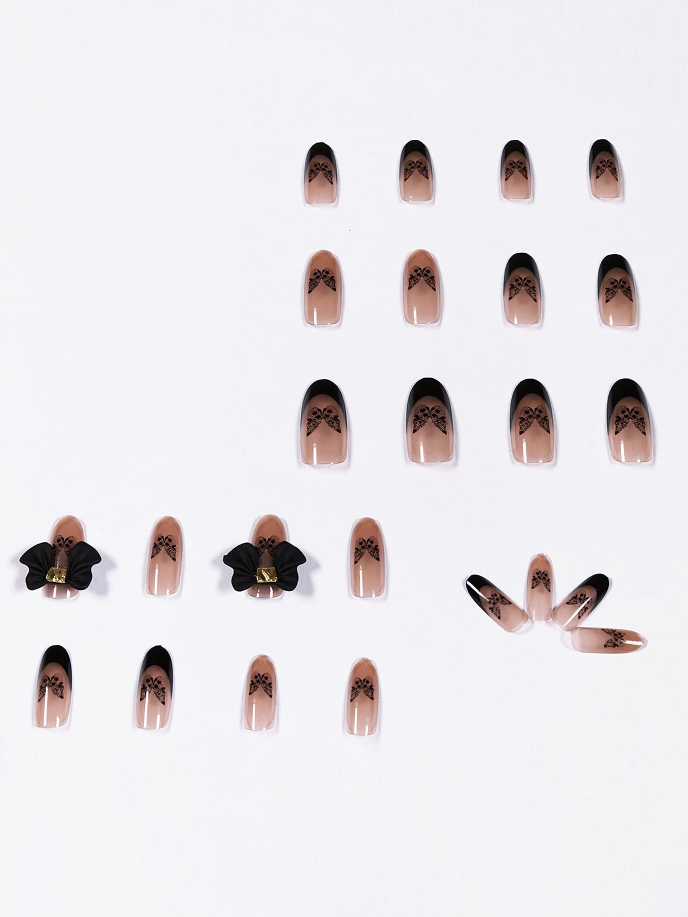 24pcs Oval 3D Bow Decor Fake Nail & 1sheet Tape
