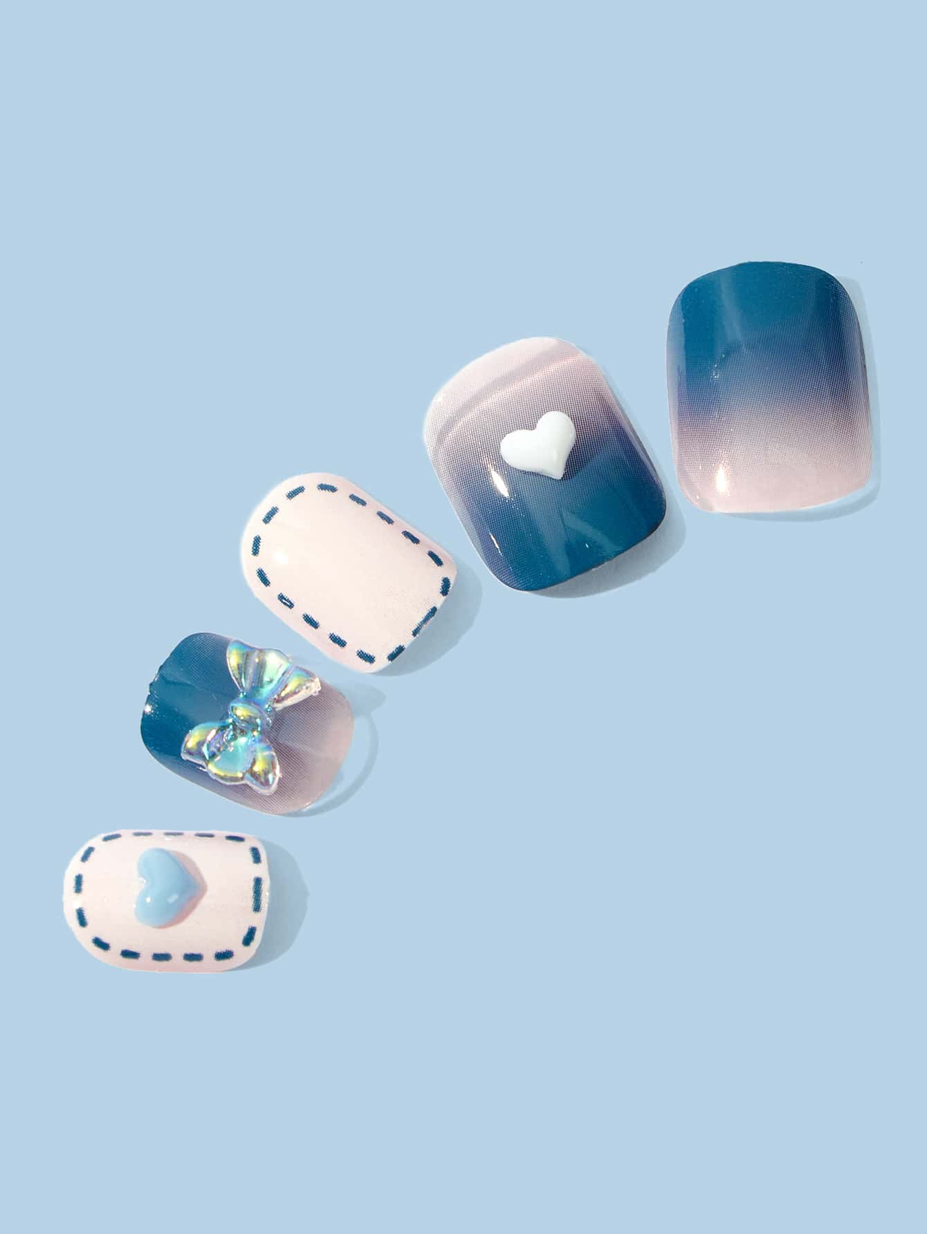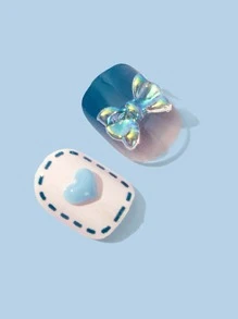 24pcs Square 3D Bow Decor Fake Nail & 1sheet Tape