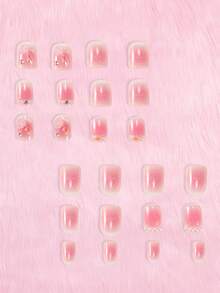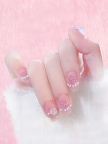 24pcs Square 3D Flower Decor Fake Nail & 1sheet Tape