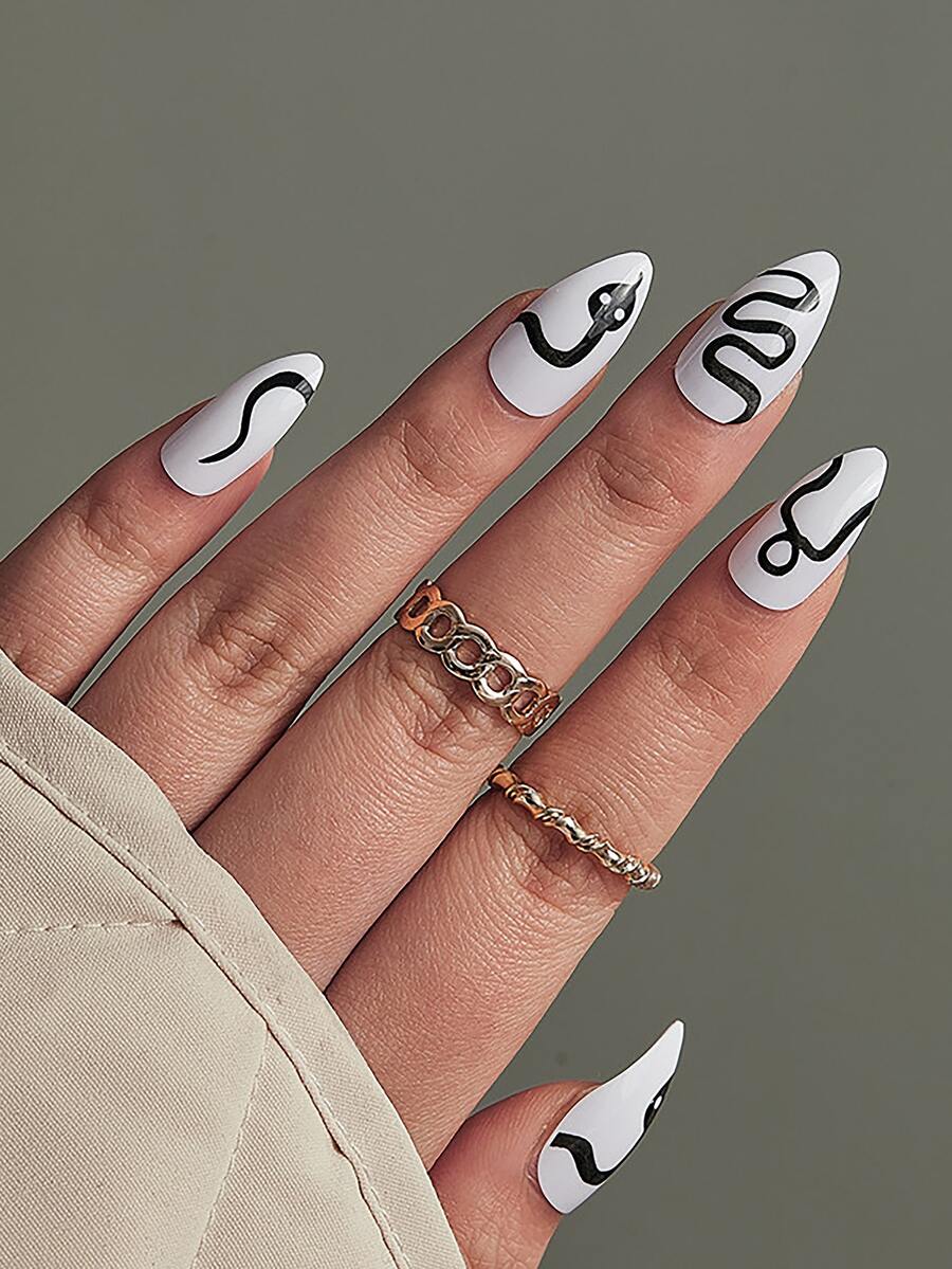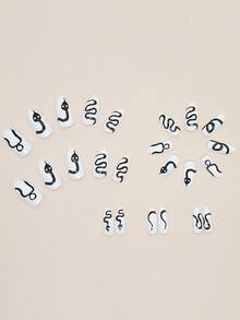 24pcs Stiletto Snake Print Fake Nail & 1sheet Tape