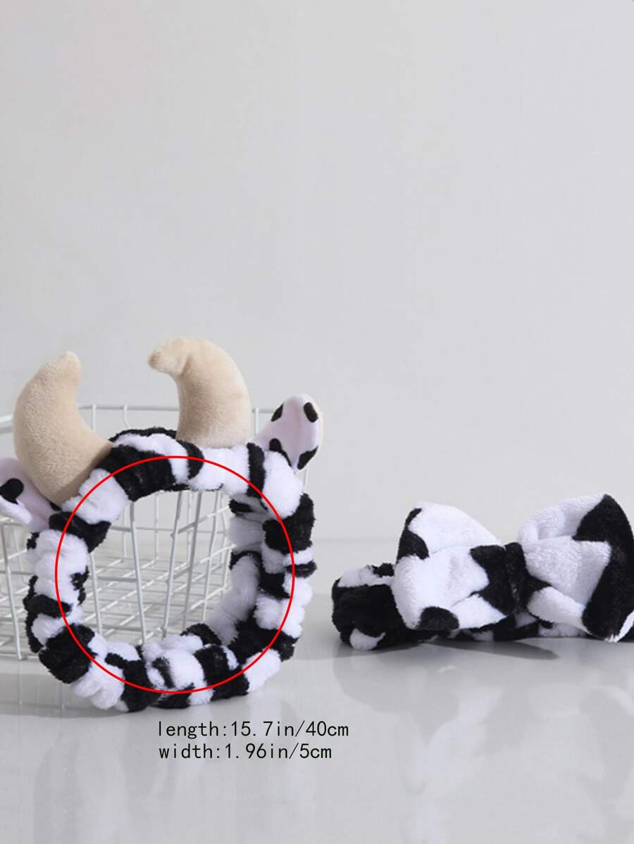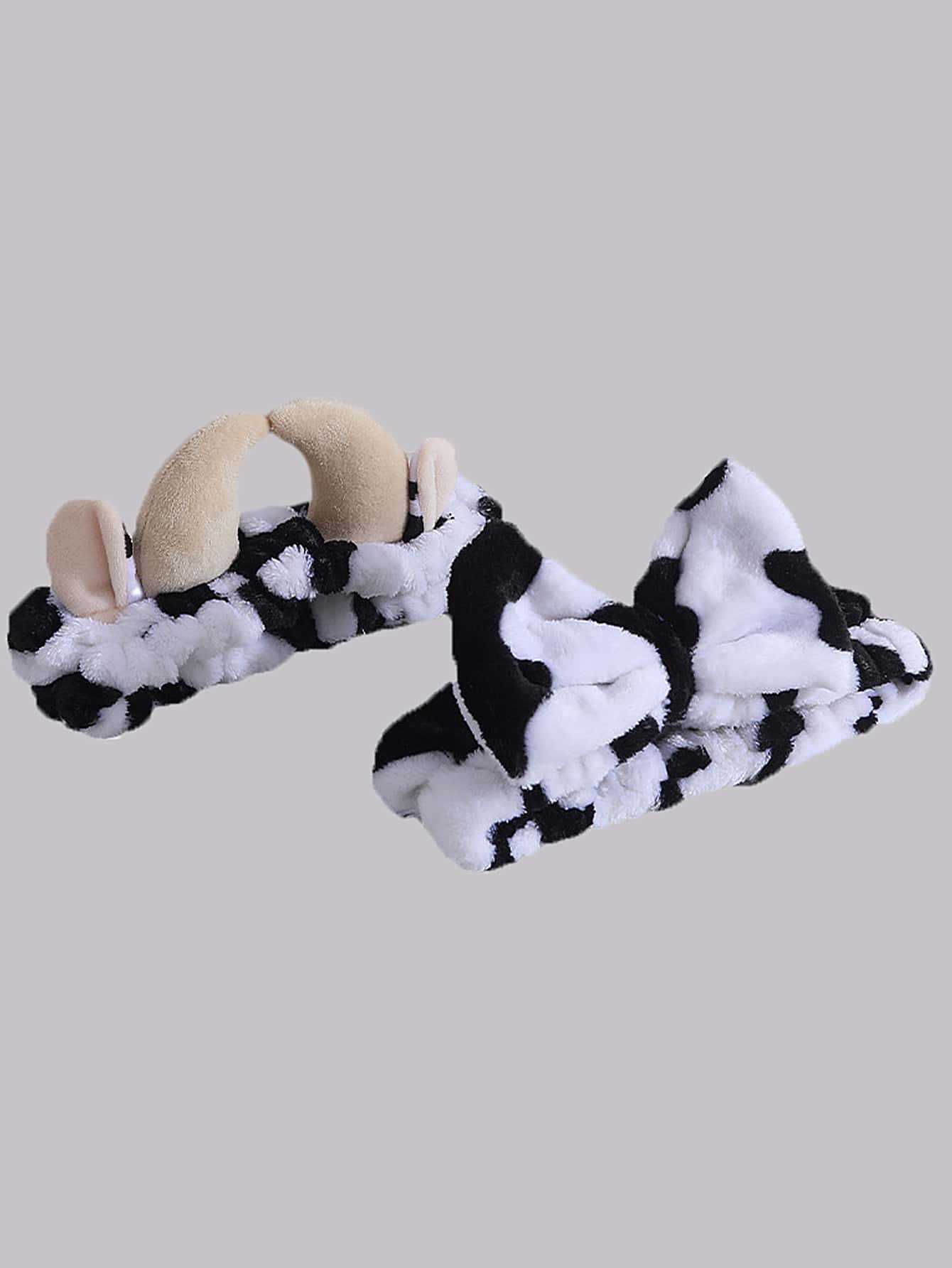 2pcs Cow Print Bath Headband, Cartoon Spa Hair Band For Bathroom