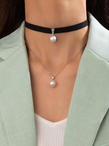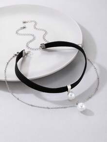2pcs Fashion Faux Pearl Charm Necklace For Women For Daily Decoration