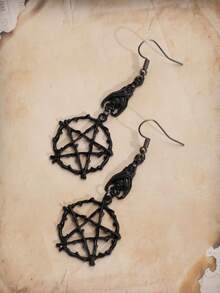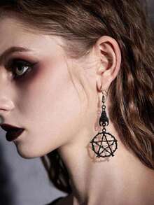 Goth 2pcs Fashion Zinc Alloy Hollow Out Star Round Drop Earrings For Women For Daily Decoration
