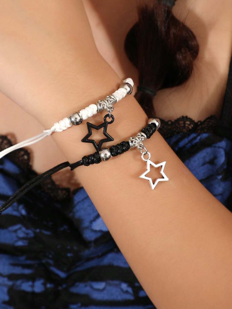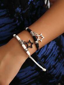 Goth 2pcs Fashion Zinc Alloy Star Charm Bracelet For Women For Daily Decoration