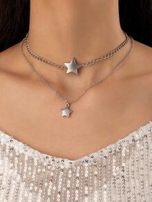 Grunge Punk 2pcs Fashion Zinc Alloy Star Charm Necklace For Women For Daily Decoration