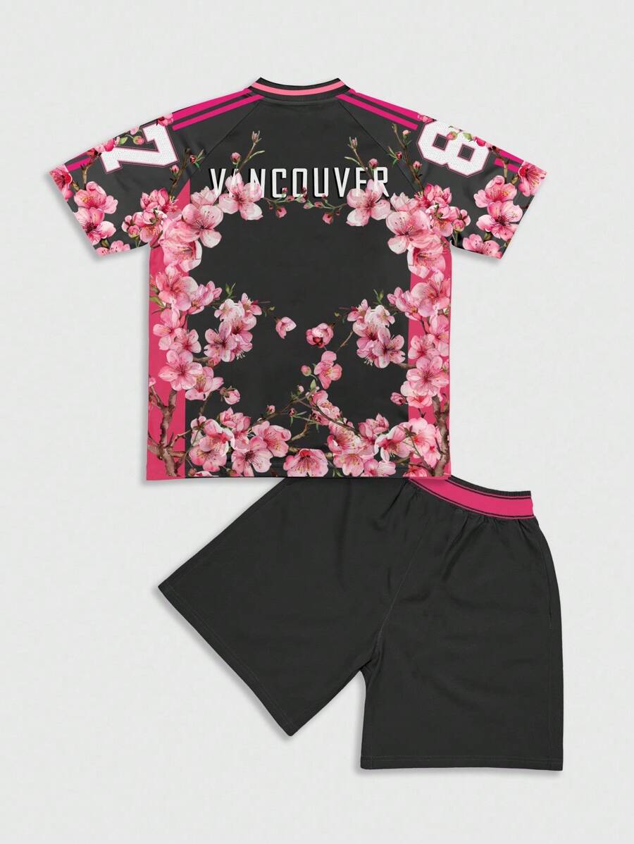 Prep 2pcs Men's Floral Print T-Shirt And Shorts Sports Suit Jersey