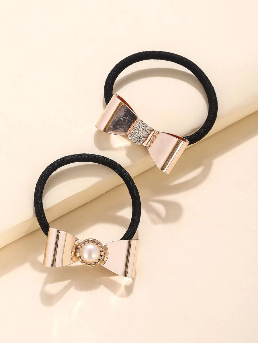 2pcs Metal Bow Knot Decor Hair Tie