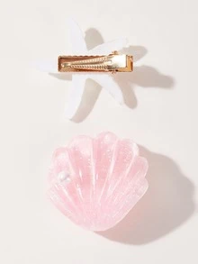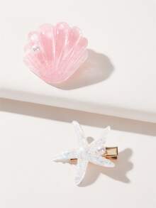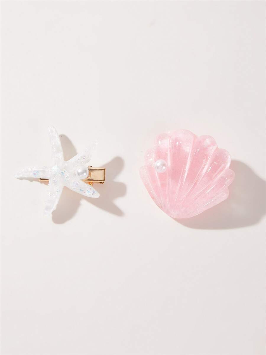 2pcs Shell & Starfish Decor Hair Clip Boho