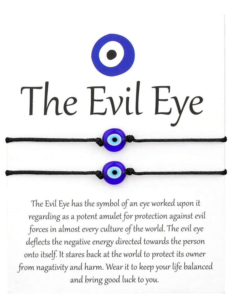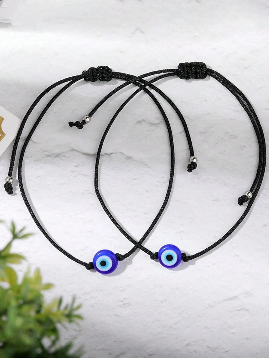 2pcs Simple Blue Evil Eye Bracelet Set For Valentine's Day, Unisex Jewelry