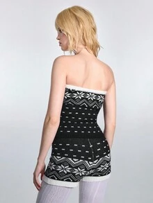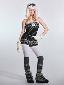 ROMWE Avant 2pcs Women's Bandeau Top And Shorts Set, Nordic Style Octagonal Flower Print