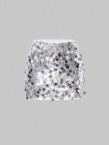 Grunge Punk 2pcs Women's Punk Style Glitter Sequin Mini Skirt And Shorts Set, Sexy Ultra-Low Waist Micro Mini Dress For Graduation, Easter, Concert, Nashville Vacation