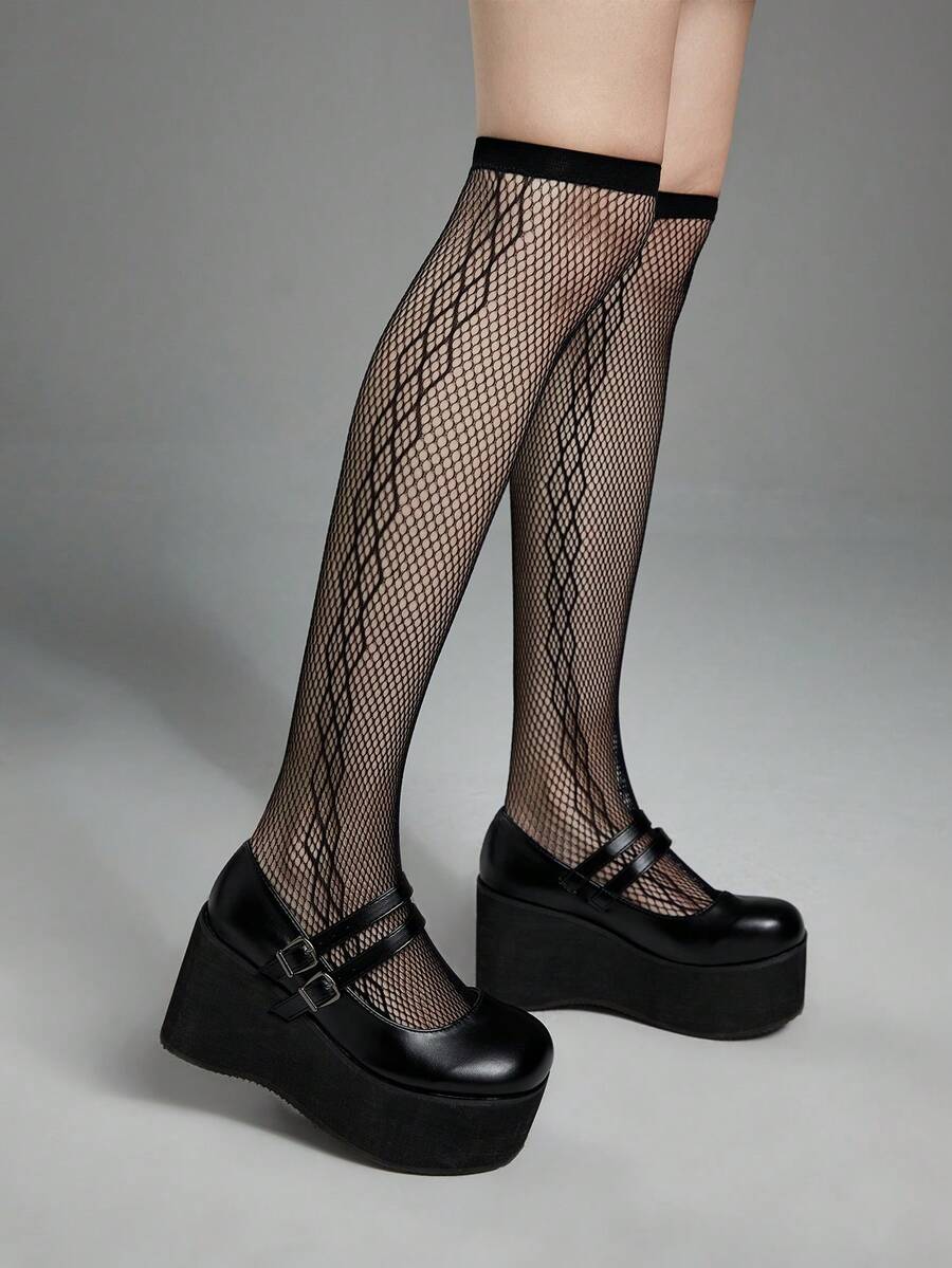 Academia 2pcs Women Fishnet Fashion Over The Calf Socks
