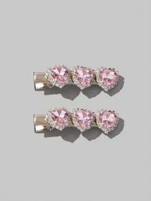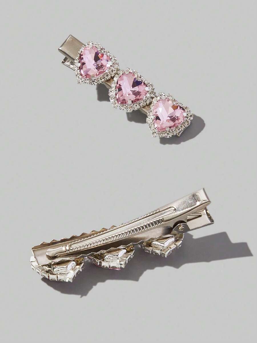 Kawaii 2pcs Women Rhinestone Heart Decor Alligator Hair Clip