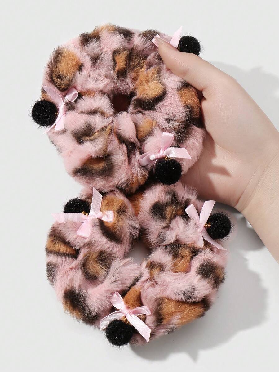 Kawaii 2pcs Y2K Retro Chic Leopard Print Fluffy Hair Scrunchies Set, Fashionable Accessories Suitable For Women, Girls, Daily Wear, Holiday Gift