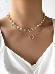 2pcs/set Faux Pearl Decor Necklace