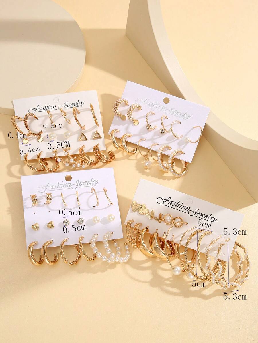 36pairs Fashion Rhinestone & Faux Pearl Decor Butterfly Earrings For Women For Daily Decoration
