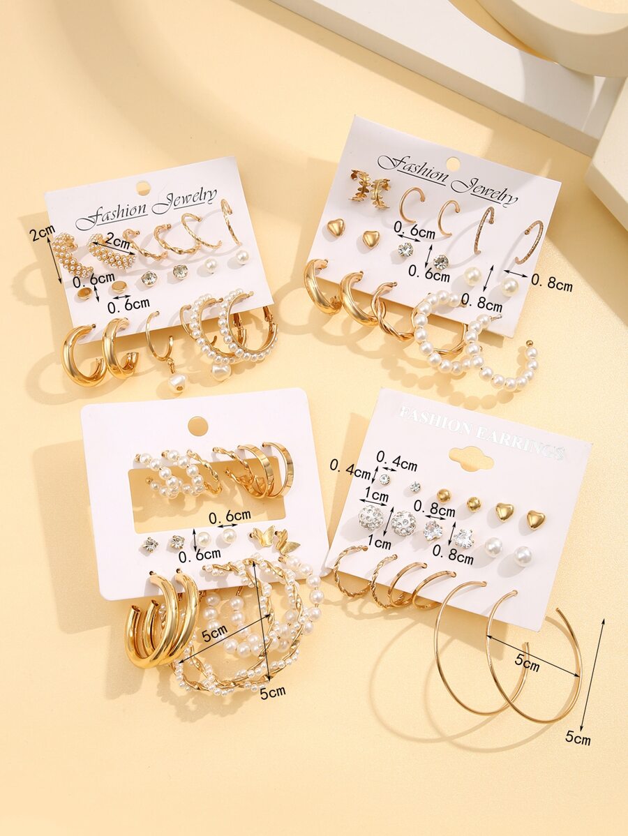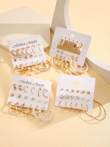 36pairs/set Faux Pearl & Rhinestone Decor Earrings