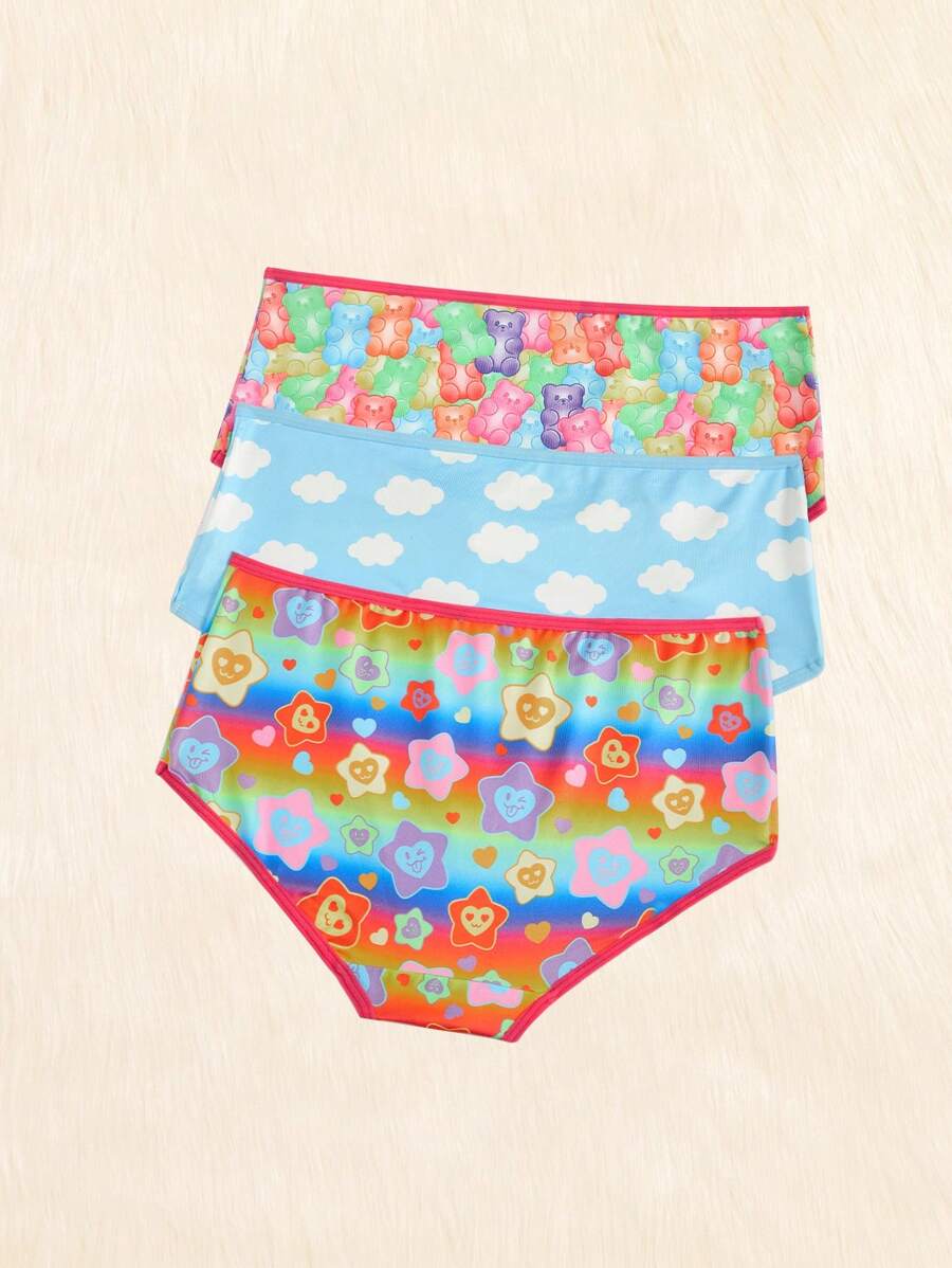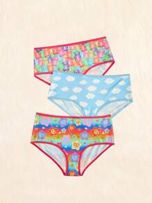 Kawaii 3pack Cartoon Graphic Contrast Binding Boyshorts