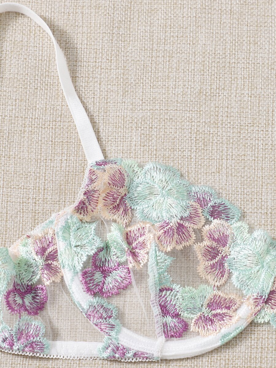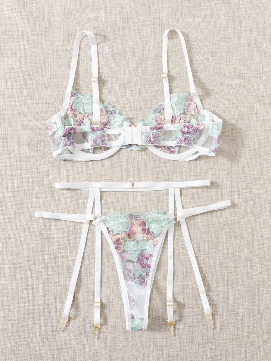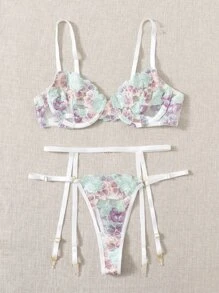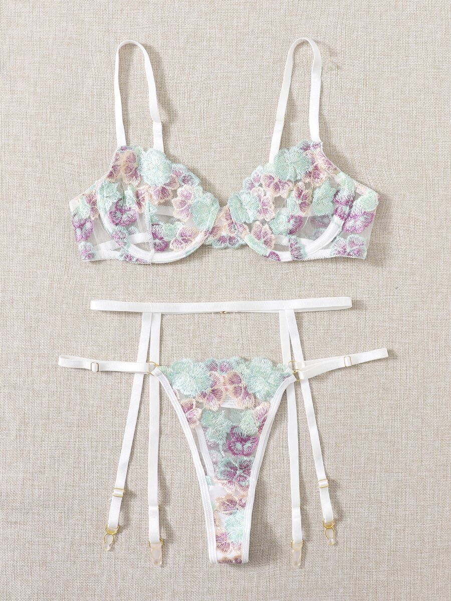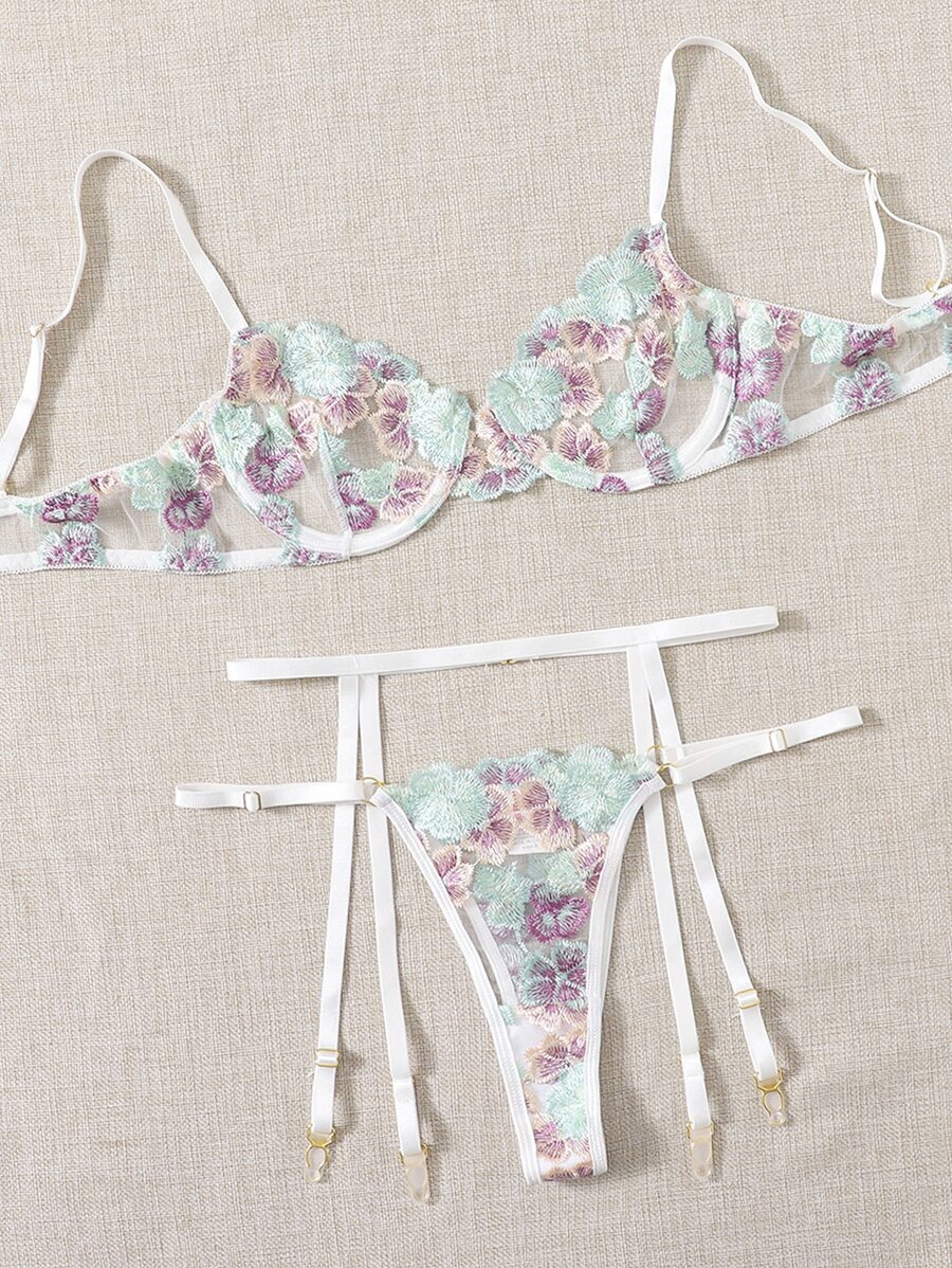 3pack Floral Embroidery Lingerie Set