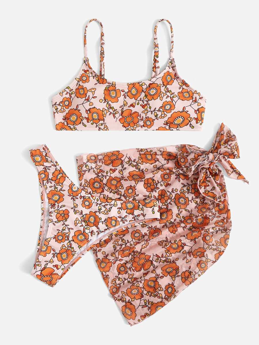 3packs Floral Print Bikini & Beach Skirt