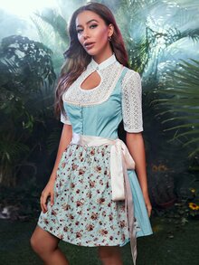 3pack Floral Print Contrast Lace Maid Costume With Apron