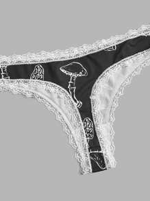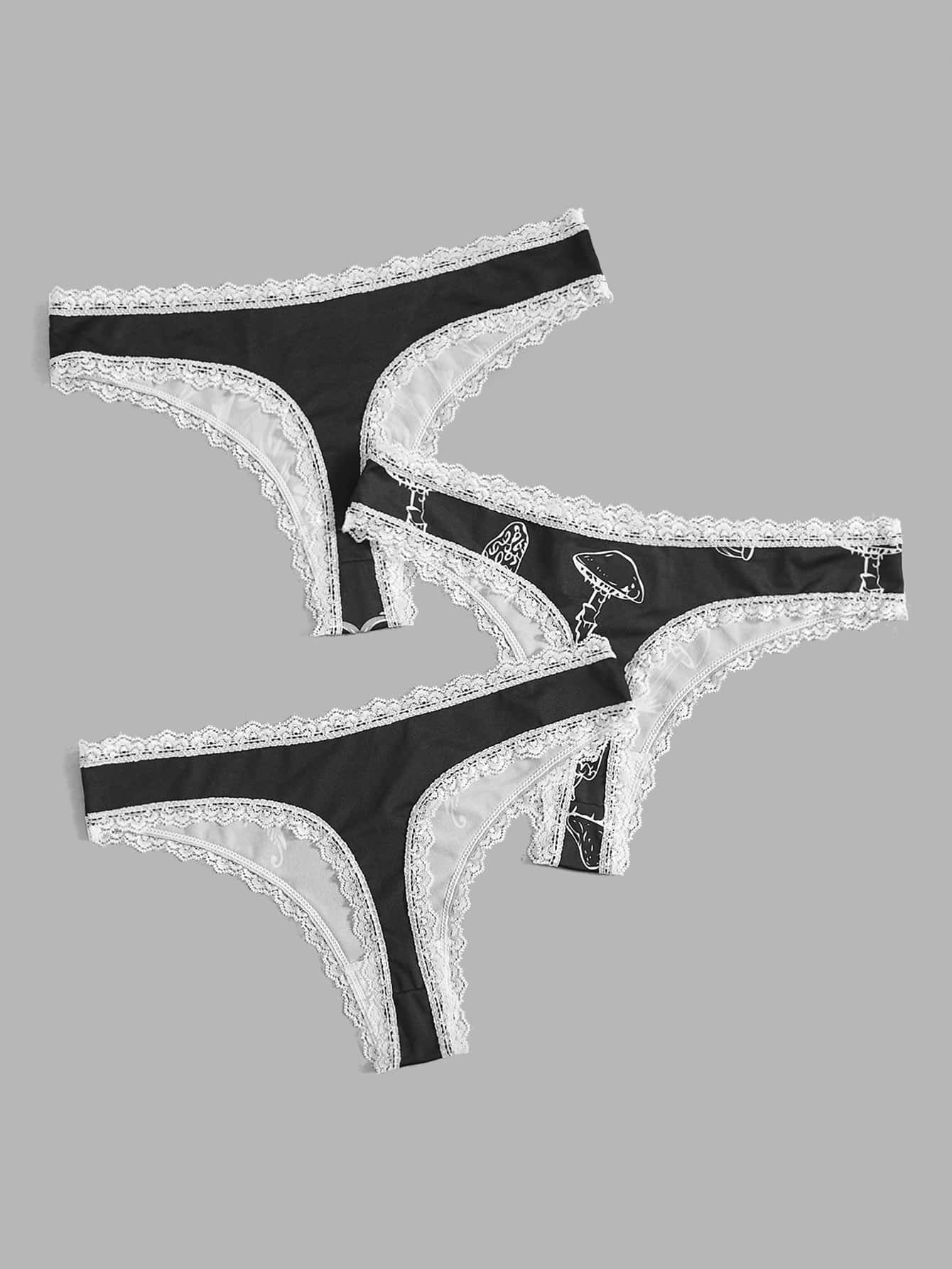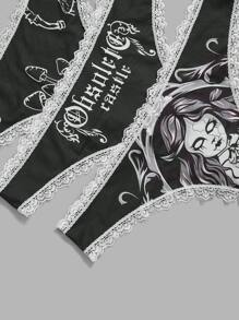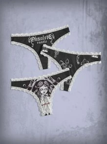 Goth 3pack Letter Cartoon Graphic Contrast Lace Panty Set