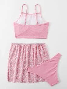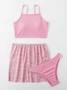 3packs Solid Bikini & Ditsy Floral Beach Skirt