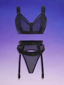 3pack Solid Fishnet Garter Lingerie Set