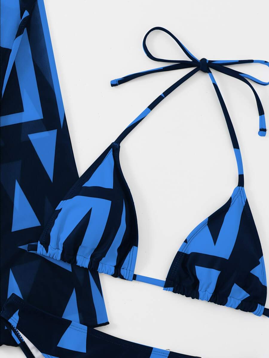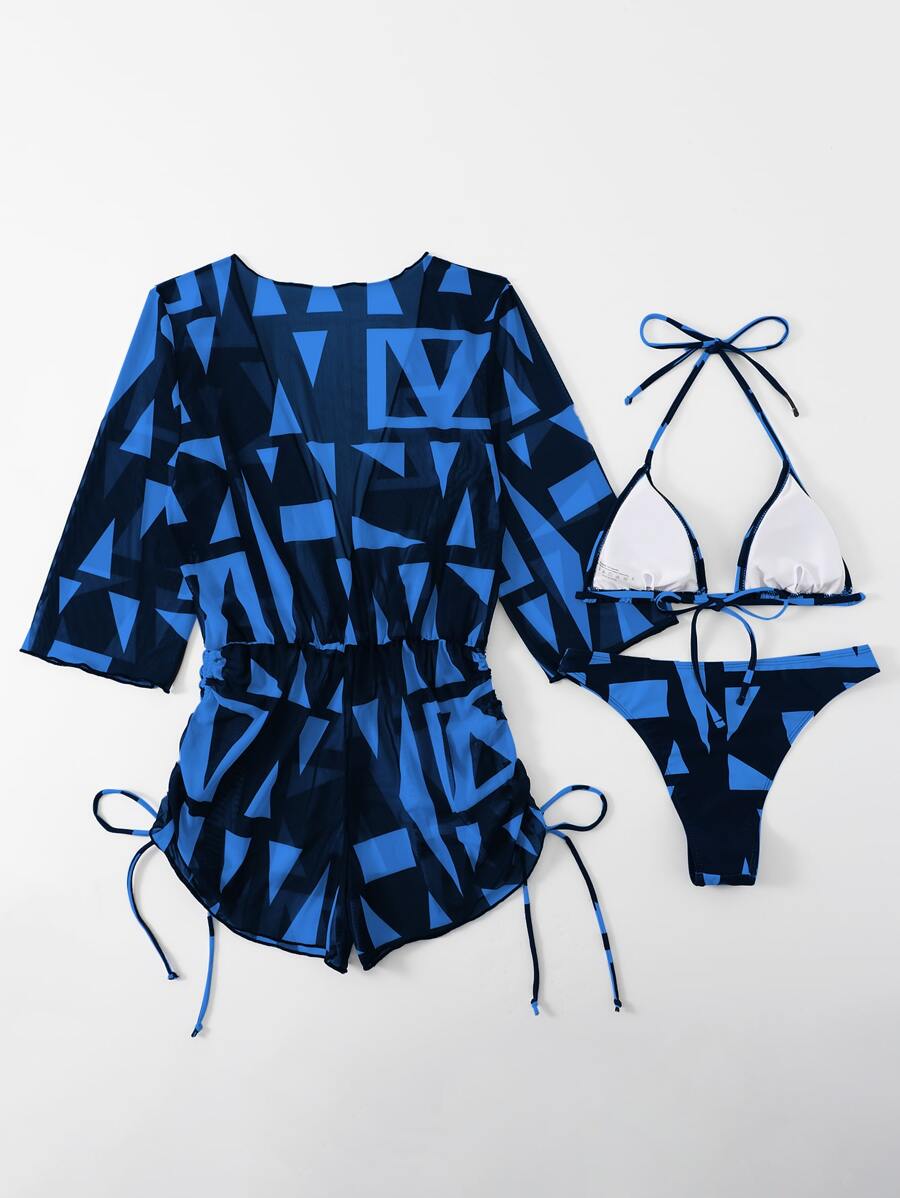 3packs Geo Print Halter Bikini Set & Cover Up Matching Set,Summer Beach