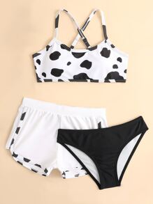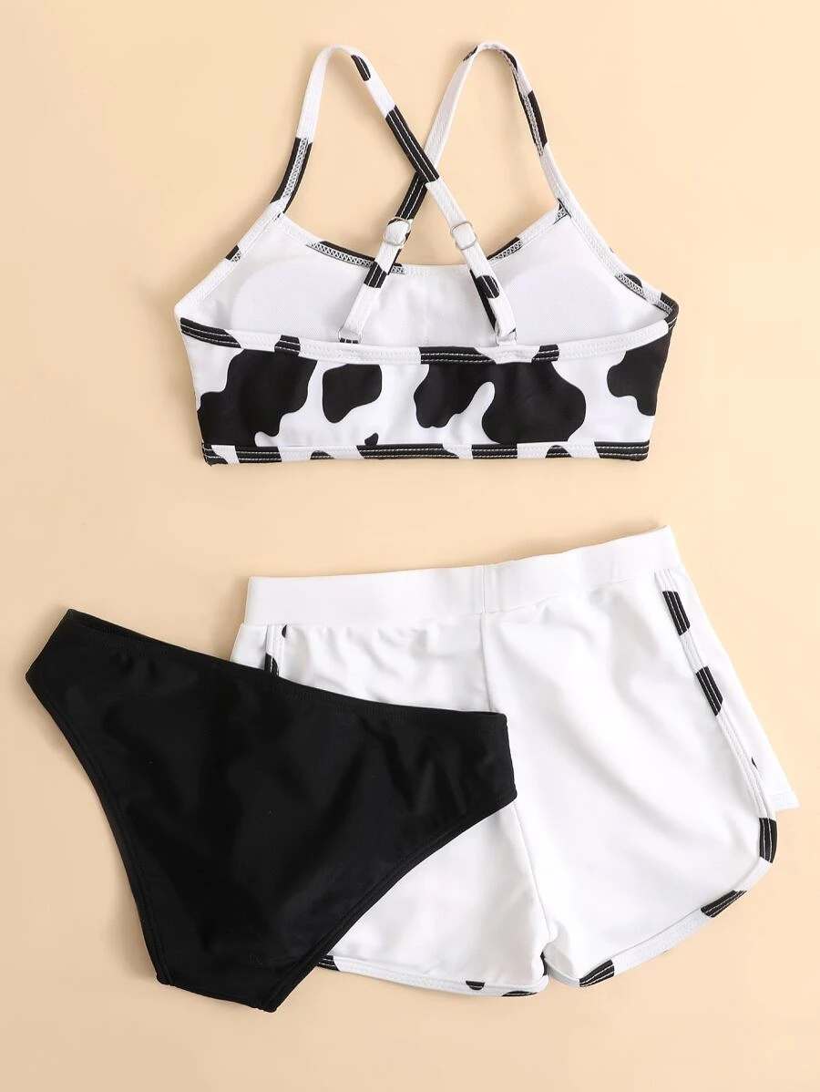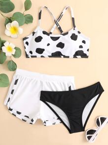 3packs Tween Girl Cow Print Bikini Set & Shorts Summer Beach